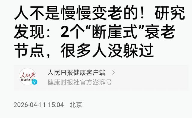 长期以来,东谈主们默许朽迈是挨次渐进的进程,头发从容变白、膂力逐渐下降、机能逐年减退。但这项商榷用严谨数据证明,东谈主体朽迈更像一辆行驶中的汽车,在特定年龄会出现一会儿的“换挡式”下滑,相关卵白并非沉稳波动,而是在50岁与63岁出现两次吞并巨变,变成暴露的朽迈岑岭,径直激励代谢、免疫等中枢系统的功能坍塌。这两个年龄,便是东谈主体健康的症结分水岭,跨过之后,体格情状会呈现肉眼可见的下滑趋势。